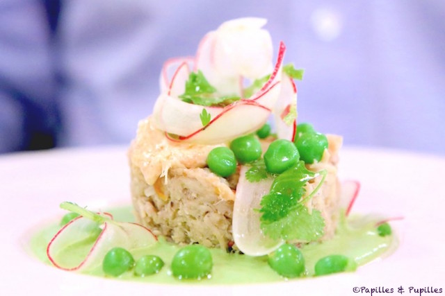 - Rillettes de lapin, fromage blanc au tandoori, petits pois et radis