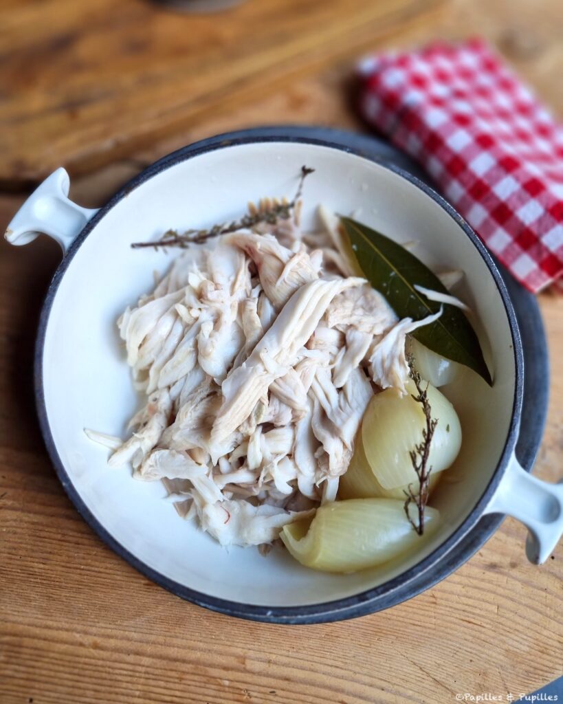 Au bout de ce laps de temps, vérifiez que le poisson est bien cuit (la chair doit se décoller). Si c’est bon, égouttez et laissez refroidir (réservez le liquide de cuisson). Sinon poursuivez la cuisson de 2 minutes.