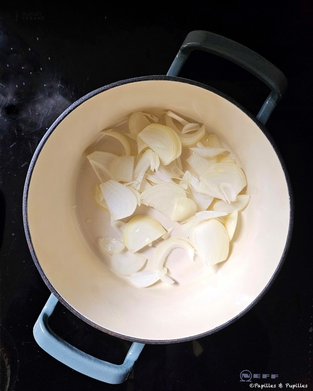 - Ajoutez les lamelles d’oignon,