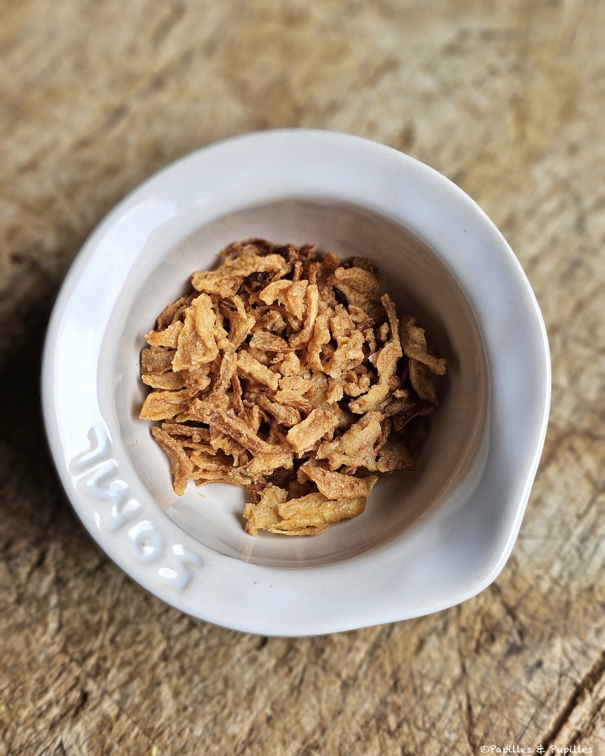 - 1 cuillère à soupe d’oignons frits